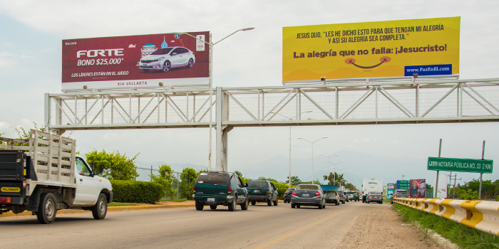 Las vallas de Publinaya cuentan con la mejor ubicación de Bahía de Banderas, lo que las hace visibles para los miles de automovilistas, locales y turistas que visitan la Bahía.
